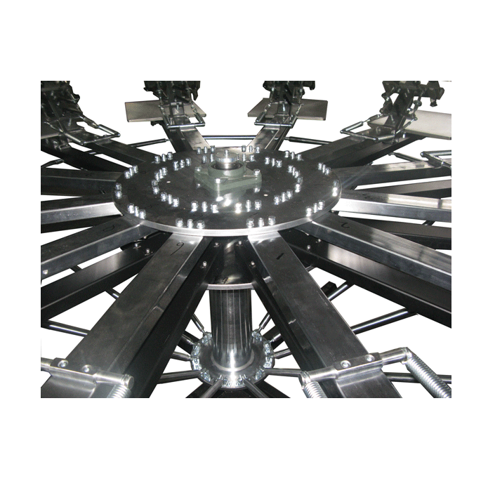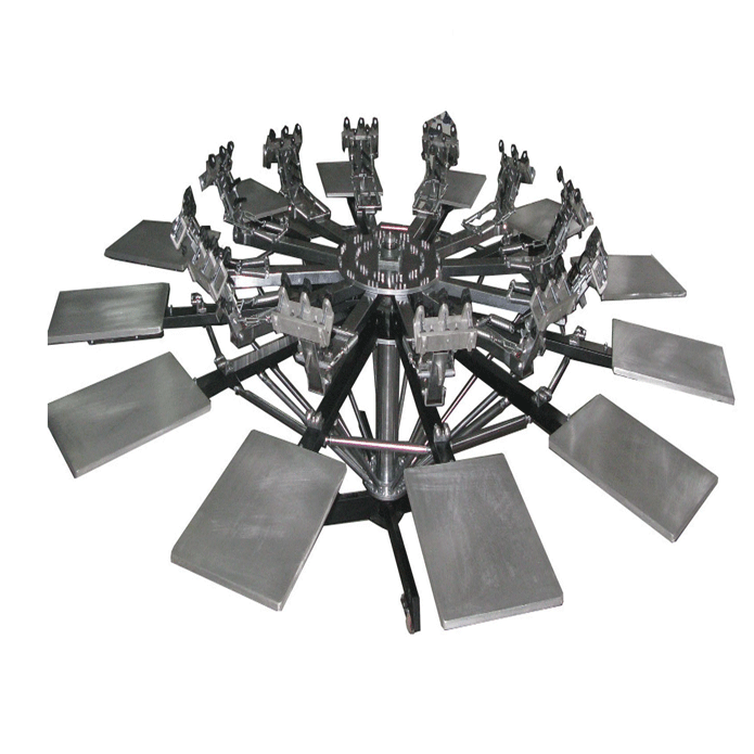 This is a rotary clothes 12-color manual screen printing machine, suitable for printing 500mm * 500mm about the format of the fabric, paper, clothes; T-shirts and other products.